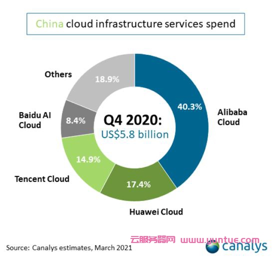 近日,市场研究机构 Canalys 发布《China cloud services market Q4 2020》,报告显示,2020 年第四季度,华为云以 17.4%份额稳居中国公有云市场第二,较第三季度的 16.2%实现稳步提升。至此,华为云在中国公有云市场已经连续四个季度排名第二。