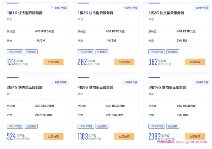 旗舰云服务器6选1,限首次购买韩国云服务器的用户,每用户限购1台。