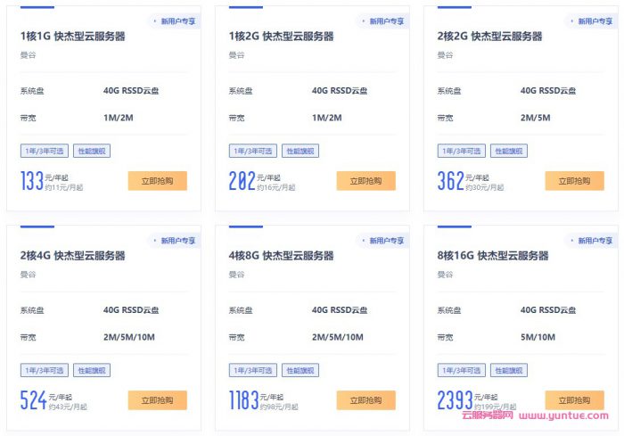旗舰云服务器6选1,限首次购买泰国曼谷云服务器的用户,每用户限购1台。