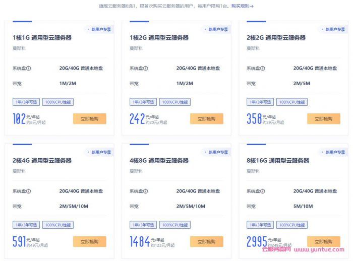旗舰云服务器6选1,限首次购买俄罗斯云服务器的用户,每用户限购1台。