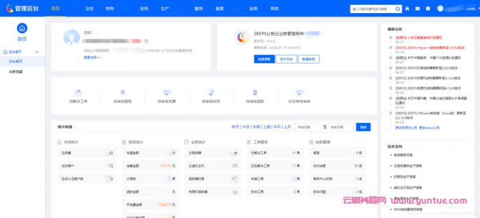 ZKEYS系统的财务、工单、备案、会员系、业务、生产等各大板块算是比较完善的 ,系统后台体验界面如下图所示: