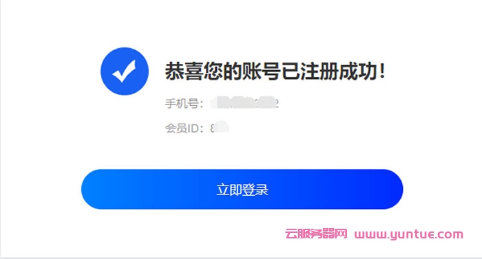 3、点击立即注册按钮,即注册成功
