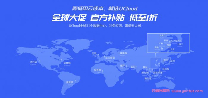 UCloud成立于2010年,拥有多年的VPS云服务管理经验,技术可靠,做到现在已经有上百万的用户了。UCloud的数据中心分布全球,有国内国外的,数据中心分布图如下所示: