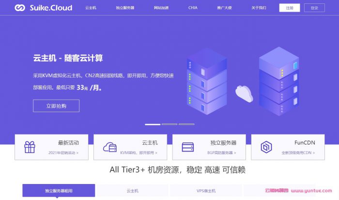 云服务器(www.yuntue.com)是一家专门做阿里云服务器代金券、腾讯云服务器优惠券的网站,这里你可以找到阿里云服务器腾讯云服务器等国内主流云服务器优惠价格,以及海外云服务器、vps主机等优惠信息,我们会为你提供性价比最高的云服务器和域名、数据库、CDN、免费邮箱等企业常用互联网资源。