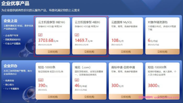 为企业提供超高性价比的云服务产品,场景化满足您的上云需求