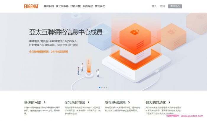 edgenat怎么样?edgenat国人主机商,成立于2019年,APNIC会员单位,ASN139803。edgenat的香港CN2、韩国CN2、美国CN2,美西CeRa直连,提供7天无理由退款(先看TOS),基于KVM虚拟,支持windows和Linux系统,纯SSD(raid5+热备),网络全部都是针对大陆优化的精品,非常适合建站等常规用途。edgenat(ASN139803)主要运作VPS业务(包括:美国cn2 vps、香港cn2 vps、韩国cn2 vps、美国AS4837联通线路VPS),此次五一劳动节给大家带来了全场VPS年付7折、月付8折、终身价(不涨价),充值500多送100的特别活动,优惠活动截止5月7日。有需要的得,可以关注一下。