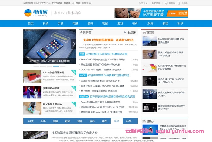 dedecms织梦IT科技新闻资讯网站源码 门户类网站模板(带手机端),这是一套蓝色大气资讯门户类网站模板,可作为IT科技新闻资讯门户类、新闻资讯类网站,也可以作为站群类网站使用,此织梦cms模板经过二次开发制作,适合各新闻资讯门户网站,这是一套非常不错的新闻资讯、文章资讯类网站,而且带手机端网站,可完美在手机端适配!具体详情可参考演示截图和演示站。