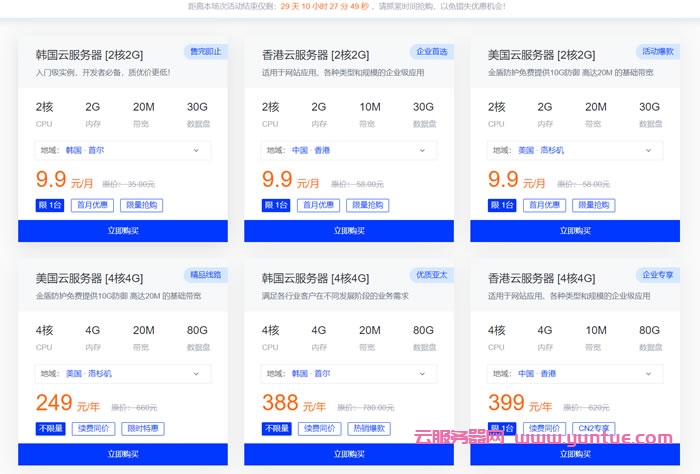 1、韩国/香港/美国首月仅需9.9元,不限制新老用户,并且更推出了4C4G的年付优惠套餐,据说都是CN2线路,可见这一次优惠力度比较大的。