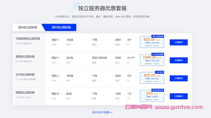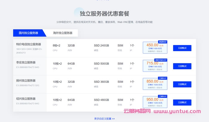 3、独立服务器套餐(独享性能,独享一切),境外和国内的独立服务器都有,看着配置和价格都是不错的。