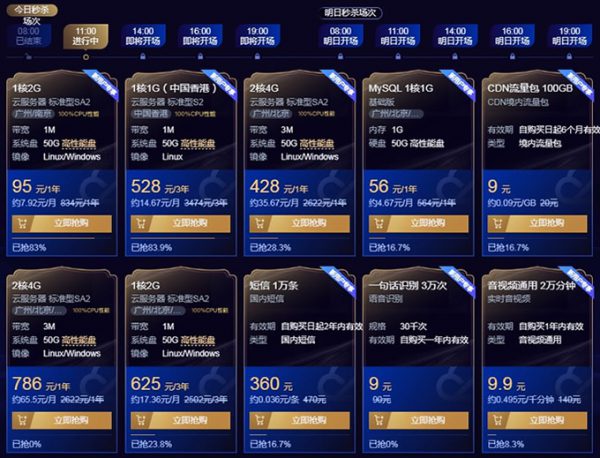 每日5场618云聚惠活动,新用户1核2G云服务器SA2仅95元/年,而香港1核1G云服务器S2仅528元/3年(注:香港资源越来越紧张了,所以多买年数是有好处的)。