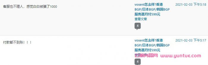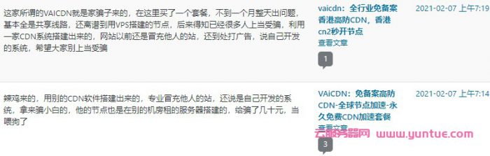 2021年2-5月被网友公开点评差评的云服务器/vps商家!云服务器网(yuntue.com)官方通过评论和QQ邮箱反映收到的情况作为统计,统计下来大概十几家被网友评论差评售后服务和欺骗性的云服务器、VPS主机商、CDN商家。