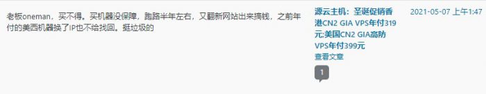 老板oneman,买不得。买机器没保障,跑路半年左右,又翻新网站出来搞钱,之前年付的美西机器换了IP也不给找回。挺垃圾的