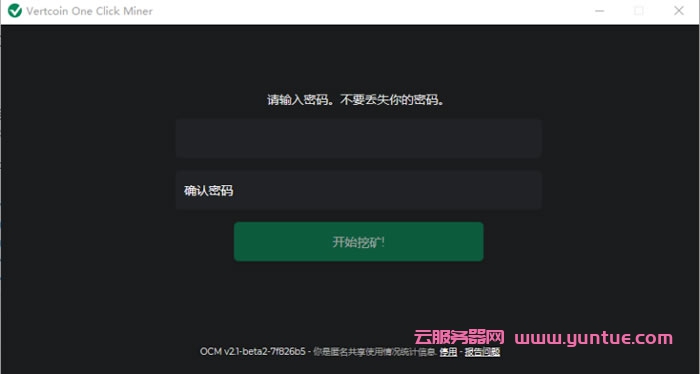 2.下载好之后解压,打开exe,就可以直接看见一个密码设置界面。设置完成后,它就会开始自动继续安装,检测环境并且安装挖矿进程,如果在环境检测中发现不能挖,那就说明这台电脑不能用于挖矿。