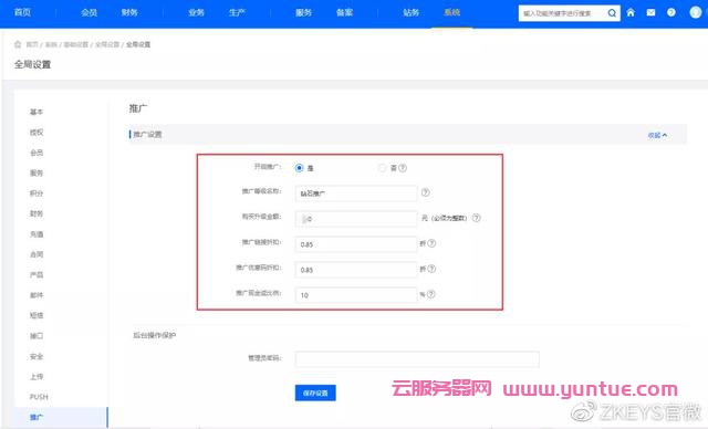 优化:CPS推广折扣及返利参数,开放全局设置中可自定义设置。
