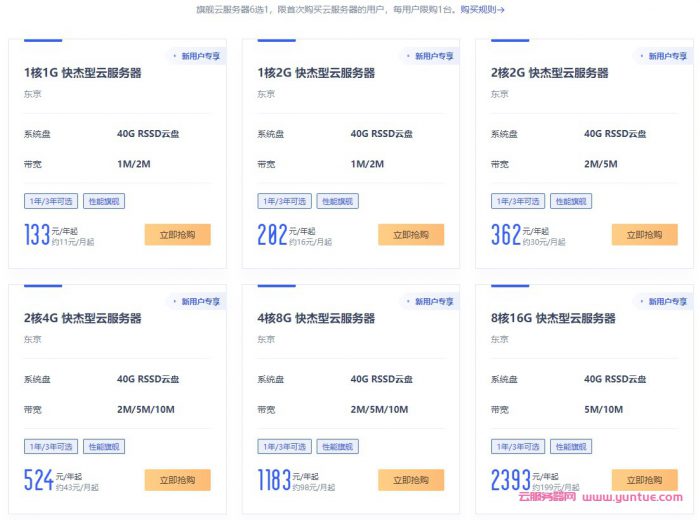 旗舰云服务器6选1,限首次购买云服务器的用户,每用户限购1台。