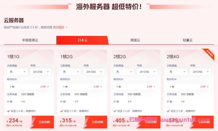 恒创科技提供香港云服务器、日本云服务器、韩国云服务器、美国云服务器、轻量云服务器的云服务器租用方案,实例丰富,性能稳定,可满足用户在全球多个区域高速访问的需求。恒创科技本月有出海特惠采购活动,海外云服务器3折起,新款日本服务器/轻量云服务器,特惠上新低至 6.5 折。