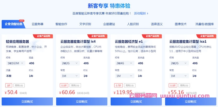 百度智能云新客专享优惠 年度好价限量抢购!云服务器密集计算型 ic4 2核2G1M仅60.66元/年,限企业用户。