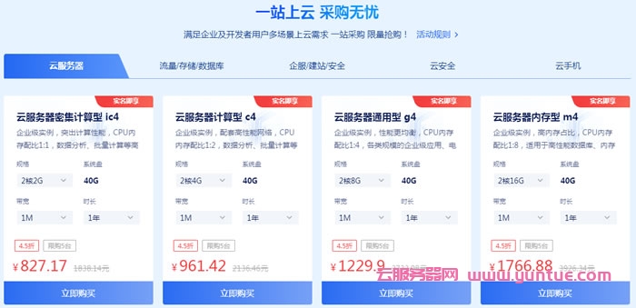满足企业及开发者用户多场景上云需求 一站采购 限量抢购!云服务器计算型c4 2核4G仅961.42元/年起。