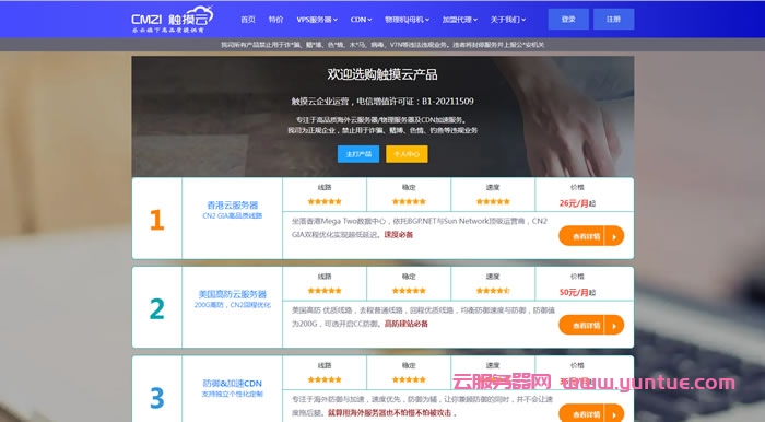 触摸云怎么样?触摸云企业运营,电信增值许可证:B1-20211509,专注于高品质海外云服务器/物理服务器及CDN加速服务。触摸云为正规企业,提供香港CN2、香港CN2 GT、美国T级高防云、日本CN2云、美国CERA大带宽、美国超高云等节点。目前,触摸云香港CN2/美国高防/日本CN2,2核/2G/10M带宽,仅380元/年起,性价比不错,可以进入官网了解详情!