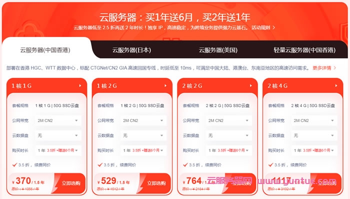 一、云服务器:买1年送 6 月,买2年送 1 年