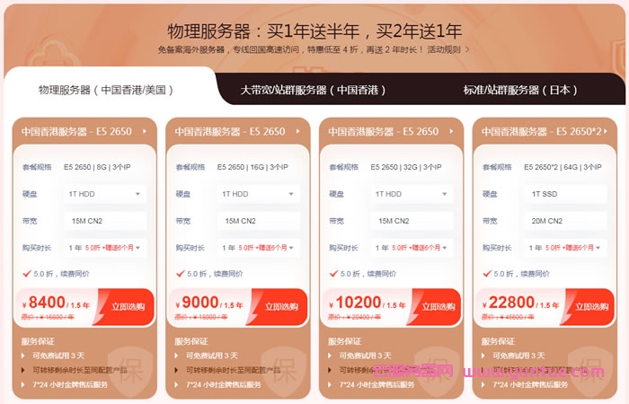 二、高配物理服务器:买 1 年送半年,买 2 年送 1 年