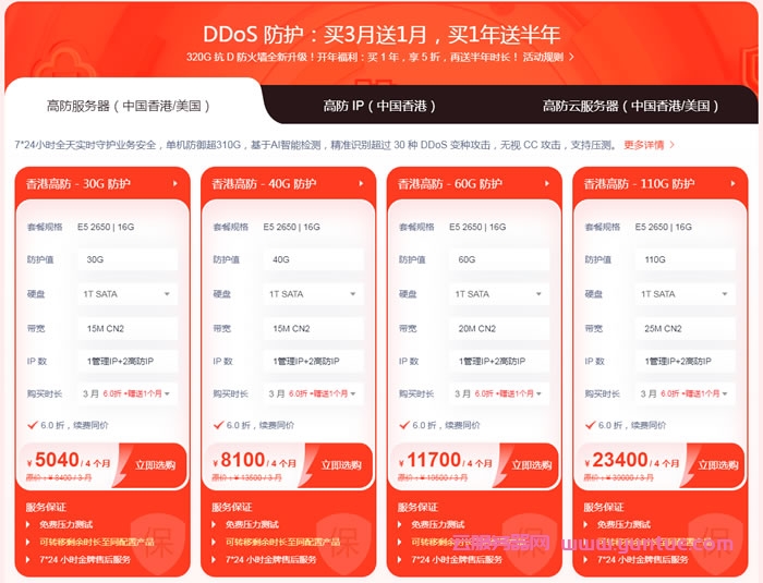 三、全新升级DDoS防护:买3月送1月,买1年送半年