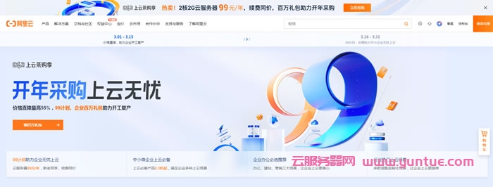 2024年阿里云3月优惠「开年采购季」云服务器价格表和优惠券领取,99计划云服务器99元一年起、免费领取上云扶持优惠券,不只是云服务器、云数据库、存储、云电脑、域名等均有活动,阿里云开年采购上云无忧活动入口、优惠价格表和优惠券领取详细说明!