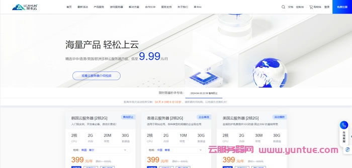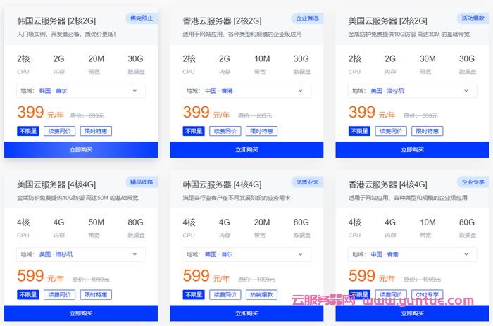 韩国云服务器 [2核2G20M]、香港云服务器 [2核2G10M]、美国云服务器 [2核2G30M],仅399元/年起