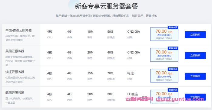 香港、美国、韩国、镇江云服务器,4核、4G内存,仅70元/月起,新客专享(原价200元/月)