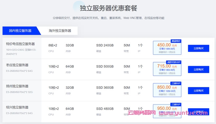 特价国内、海外独立服务器,分钟级的交付,提供在线实时开关机、重启、重装系统、Web VNC管理、在线监控等功能