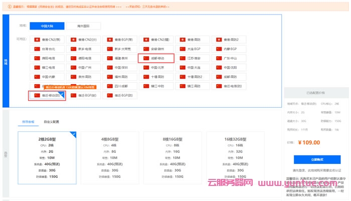 | 成都移动2核2G | 成都移动2核4G | 成都移动4核8G | 成都移动8核16G |