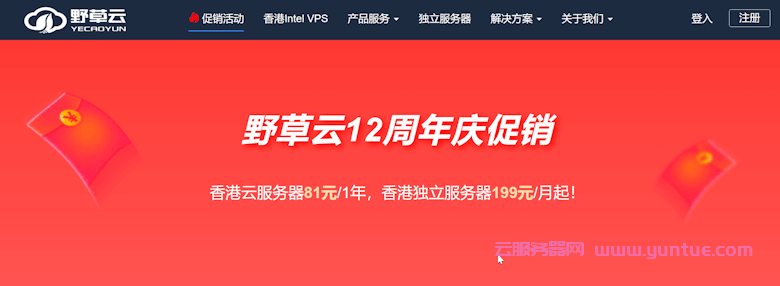 野草云,一个国内的小众云主机商有提供香港云服务器和独立服务器业务。包括有AMD和INTEL CPU配置且不同的优化线路产品。这次他们的十二周年活动中有提供多款云服务器和独立服务器活动,最低香港VPS年付81元。