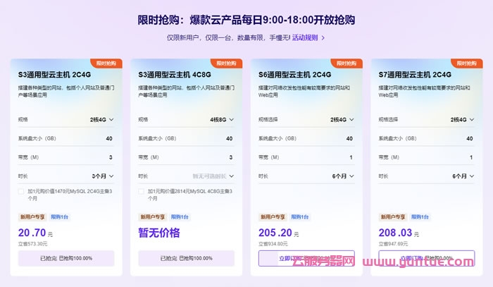 一、限时抢购:爆款云产品每日9:00-18:00开放抢购