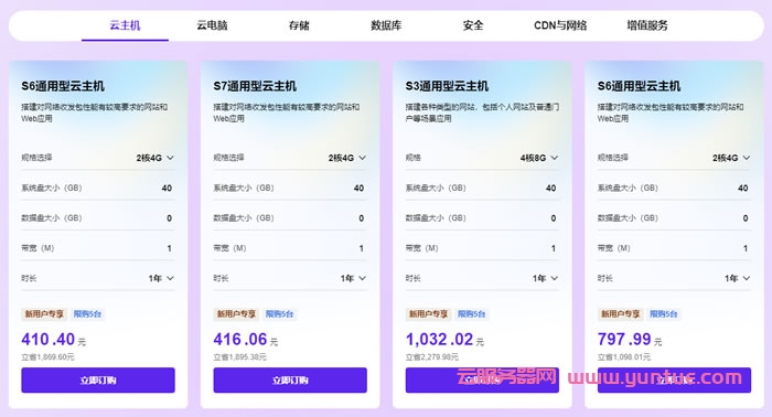 仅限新用户,仅限一台,数量有限,手慢无!S3通用型云主机 2C4G3M,仅20.7元/3个月起