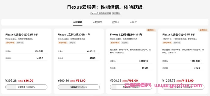 Flexus L实例,2核4G5M云服务器,低至188元/的起;2核2G3M云服务器低至61元/年起;