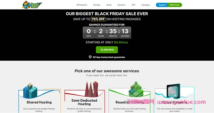 hawkhost老鹰主机推送推送了24年黑五优惠,还在用着虚拟主机的小伙伴可以关注下,毕竟虚拟主机省事,价格便宜。今年的黑五优惠是虚拟主机和Semi-Dedicated Hosting(半虚拟主机,半虚拟主机与上面的shared hosting是完全一样的,唯一不同就是在资源分配上面更加独立~),一次性3折优惠(降价70%)或者永久4.5折循环优惠。所有主机可选择的数据中心有:洛杉矶、达拉斯、纽约、多伦敦、阿姆斯特丹、新加坡、香港。