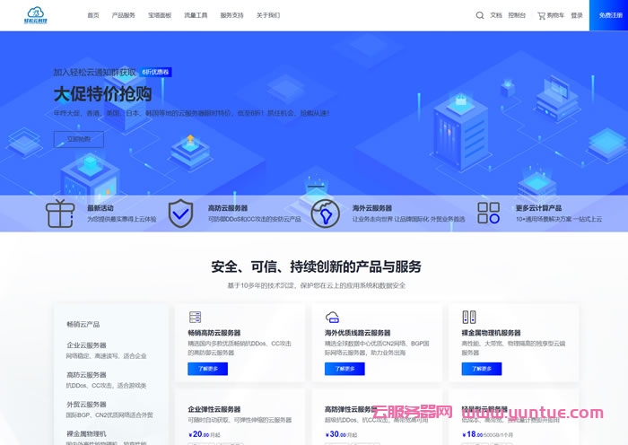 轻松云拥有:香港CN2 美国cera洛杉矶 日本BGP 日本东京 韩国Kt 湖北CUG 等多地区原生ip服务器,美国T级无敌防御、香港百兆大宽带、香港CN2金盾、韩国金盾产品分区多 不一一介绍。