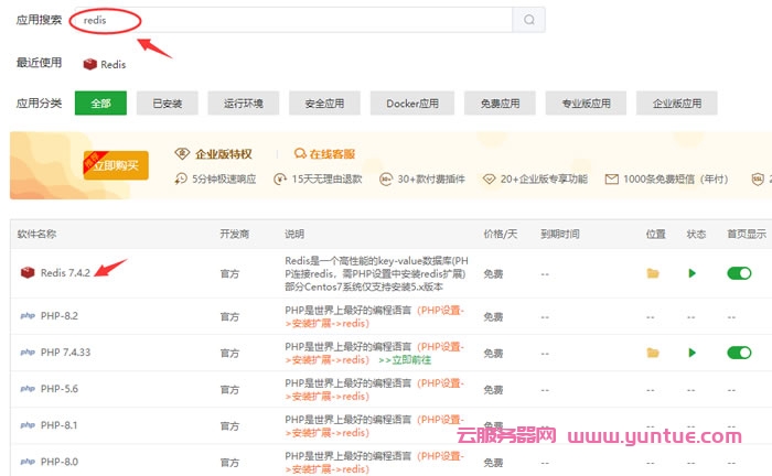首先,在宝塔面板中安装redis。在宝塔面板首页,点击“软件商店”,在搜索框中输入“Redis”,找到Redis后点击“安装”按钮。待安装完成后,您将在软件列表中看到Redis。