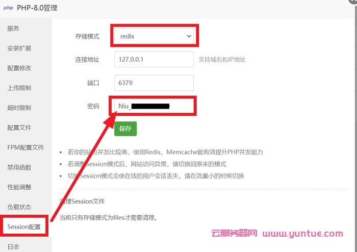 $_config[‘memory’][‘redis’][‘requirepass’] = ‘redis密码’;宝塔redis性能调整