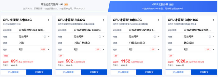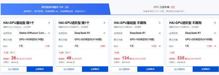 腾讯云高性能应用服务HAI提供HAI-GPU基础型和HAI-GPU进阶型方案可选,多种配置可选,低至0.8折约3.74元/天。