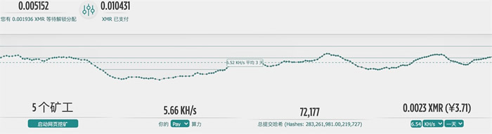 之后登录https://c3pool.com/cn/ ,输入自己XMR钱包地址,等一会就可以看见收益了。