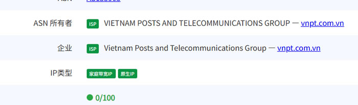 多次网站测试数据为双ISP的越南运营商的IP