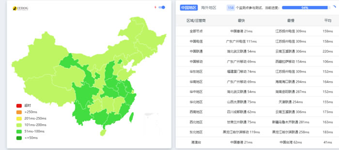 中国香港 11.11Mbps 4.45Mbps 55.79ms