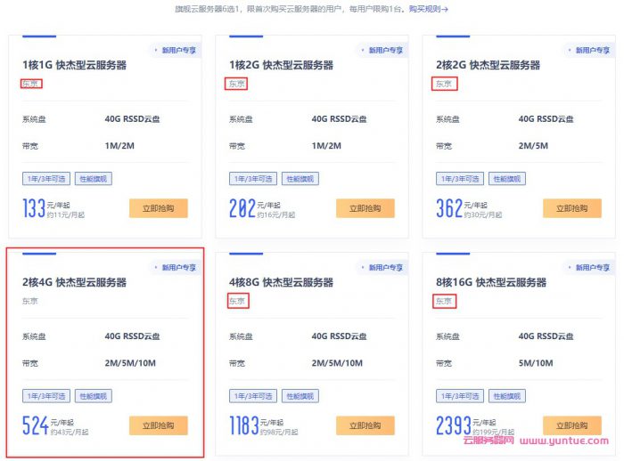 旗舰云服务器6选1,限首次购买日本云主机的用户,每用户限购1台。
