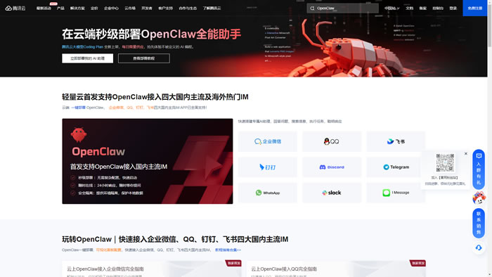 如果你是开发者或追求7×24小时高稳定在线运行的用户,腾讯云轻量应用服务器(Lighthouse)提供了完美解决方案。它国内首发了OpenClaw应用模板,免去了手动配置底层依赖的繁杂流程,支持在云端秒级启动并托管专属AI程序。