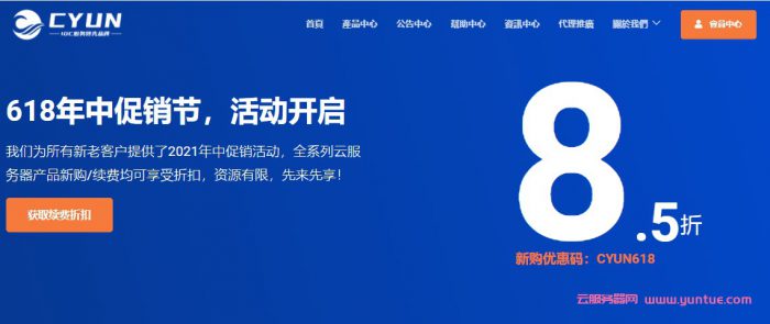 新购优惠码:CYUN618 (新购/续费同享85折优惠,可循环使用)