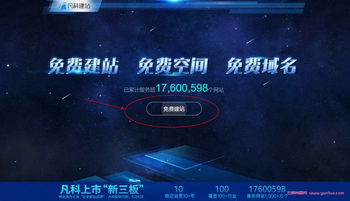 第二步:个人网站的申请注册,选择内容中间的“免费建站”选项。
