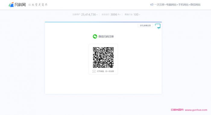 第三步:进入注册页面,完成个人网站的账号注册,可以直接微信扫码注册登录。