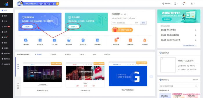 第五步:完成好个人网站的账号注册后,可进入建站平台管理(自助建站平台附送),在自助建站平台上可以设计自己的电脑网站、手机网站,然后对自己的个人网站进行相应的设计和功能添加。