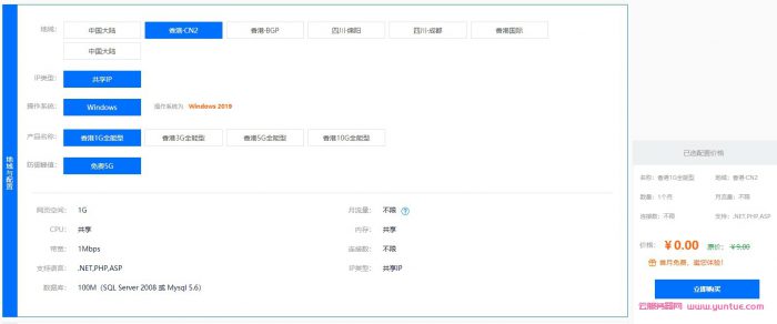 网页空间:1G月流量:不限CPU:共享内存:共享带宽:1Mbps连接数:不限支持语言:.NET,PHP,ASPIP类型:共享IP数据库:100M(SQL Server 2008 或 Mysql 5.6) <<直达链接购买